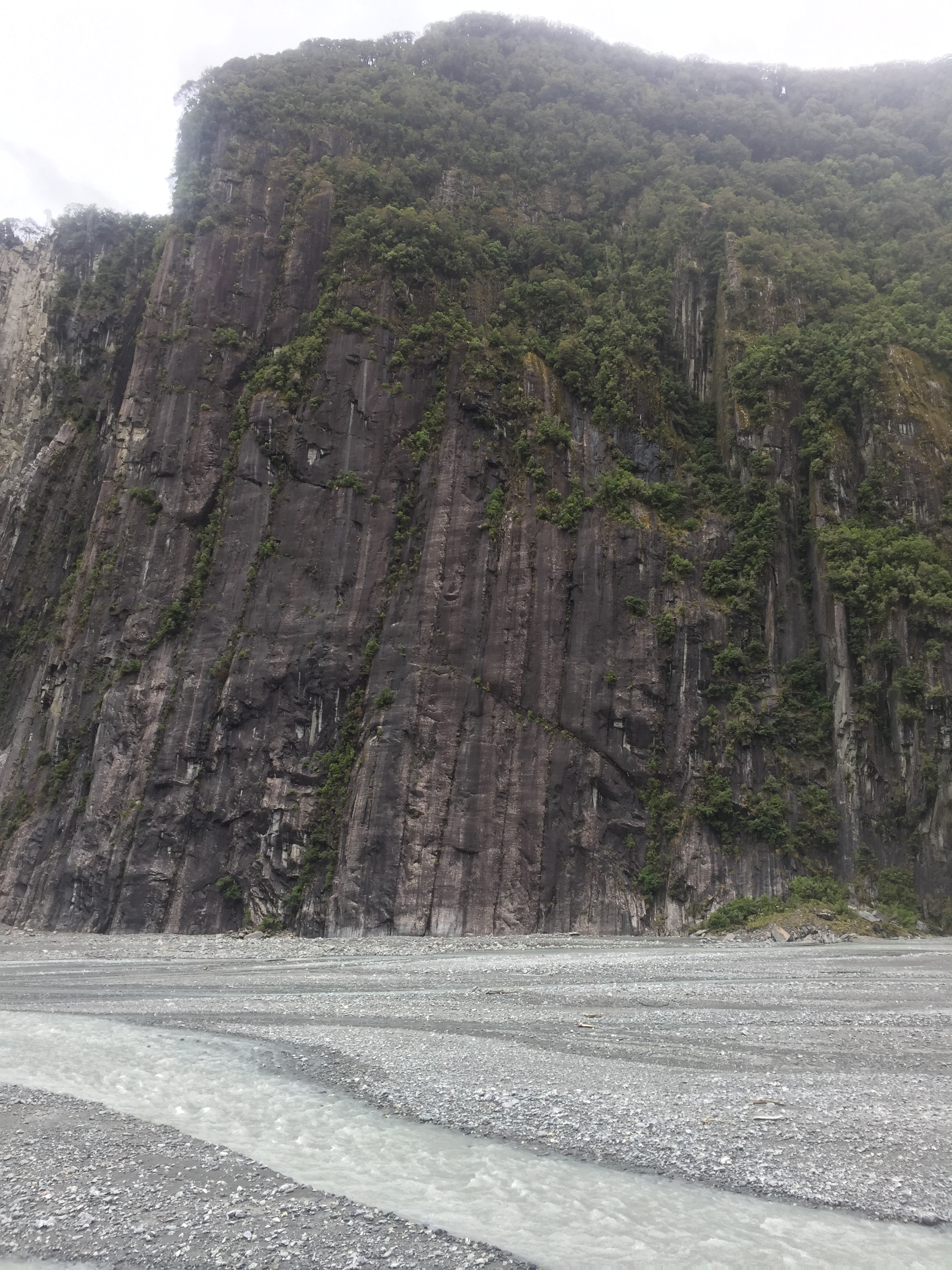 Steile uitgesleten rotsen bij Fox glacier