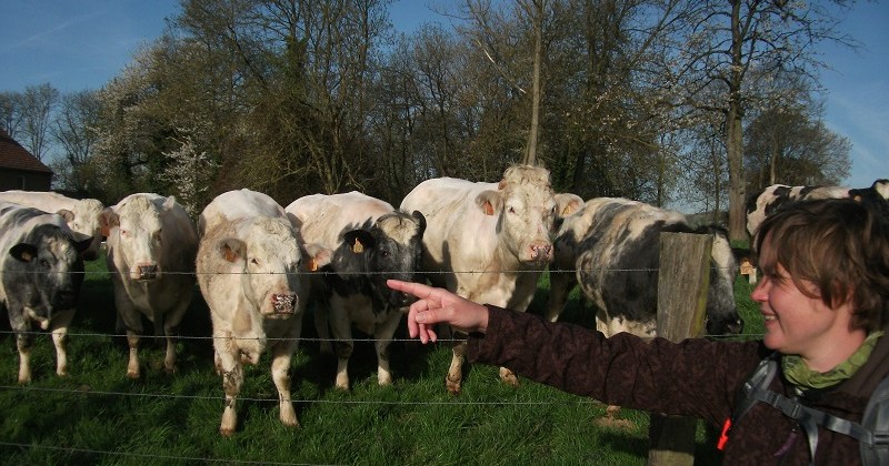 Onverwacht veel plezier beleven we aan de koeien. Ze zijn nieuwsgierig. Als we aan komen lopen staan ze op en vaak zelfs draven ze een stukje met ons mee. We zien daarin wel een verschil. De witte koeien zijn het gezelligst, de bruine koeien zijn vaak ook wel in voor wat aandacht, maar de zwart witte lijken wat schuw en rennen vaak naar de eerste de beste boom om zich achter te verstoppen.